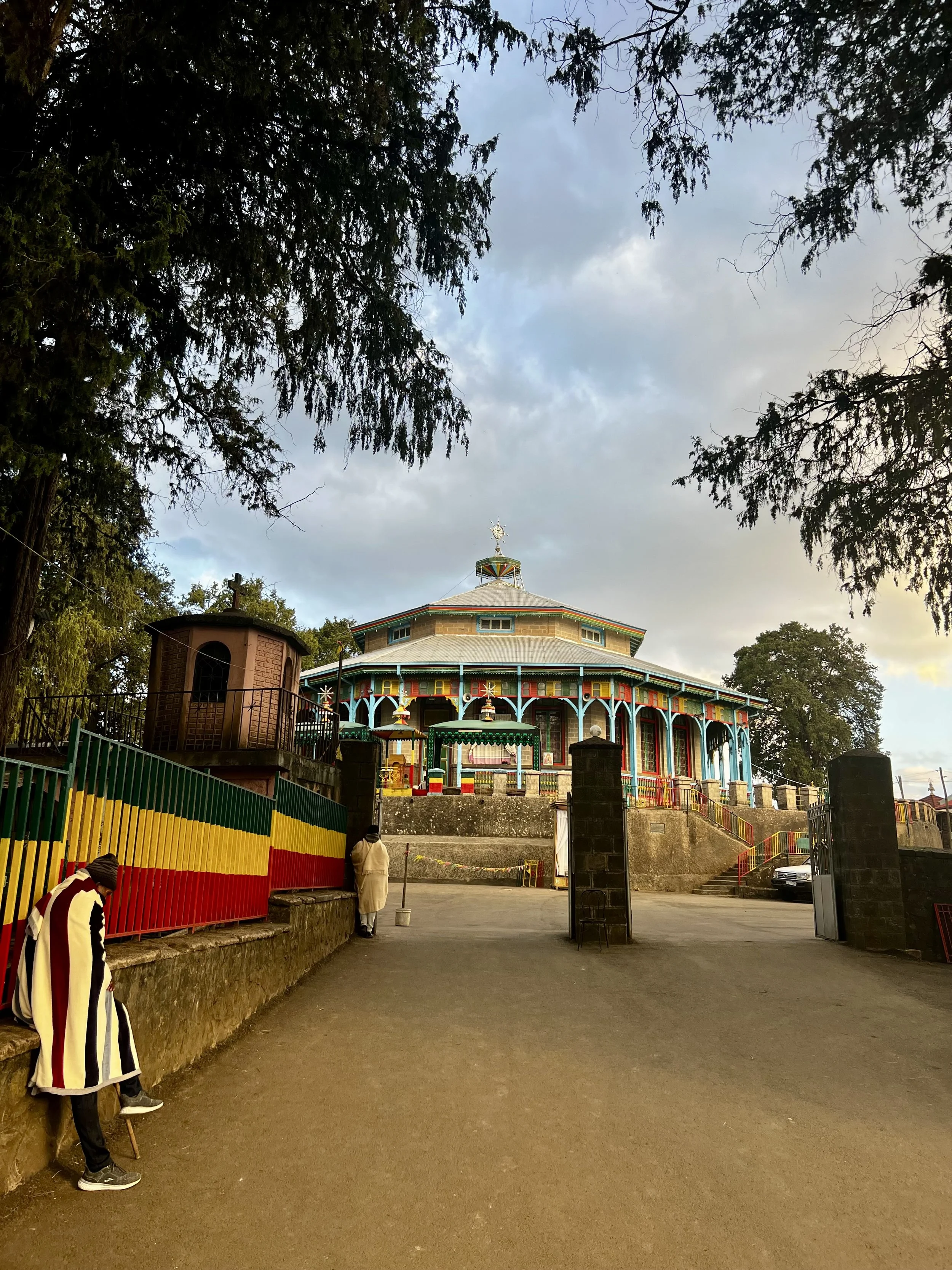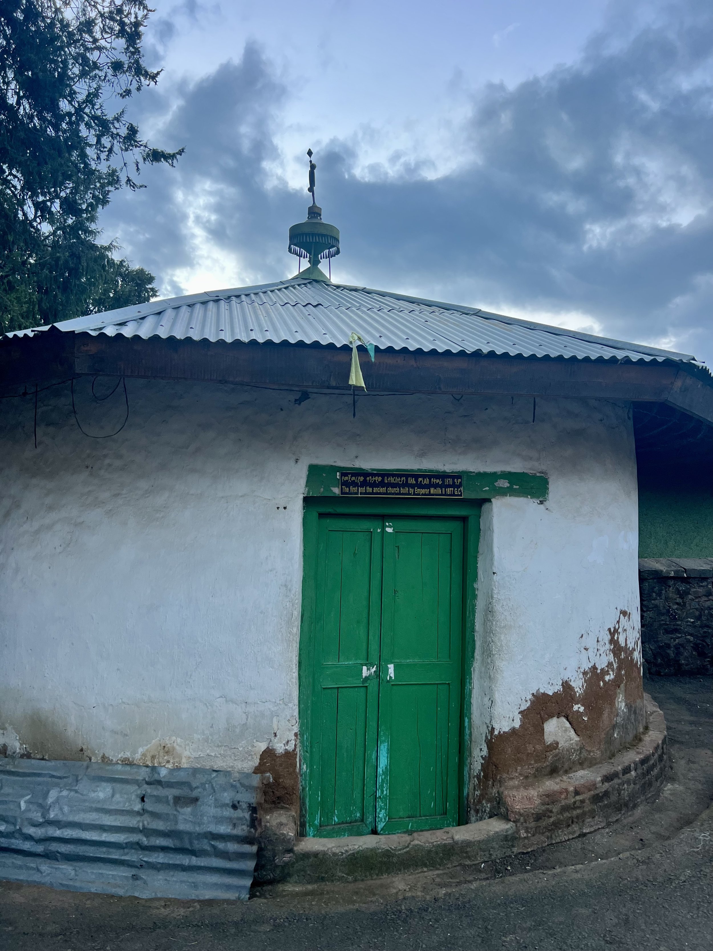As sunset began to breathe color into the sky, we drove up into the Entoto Hills to visit Entoto Mariam Church — one of the oldest in Addis Ababa, and a place I was wholly unprepared for.