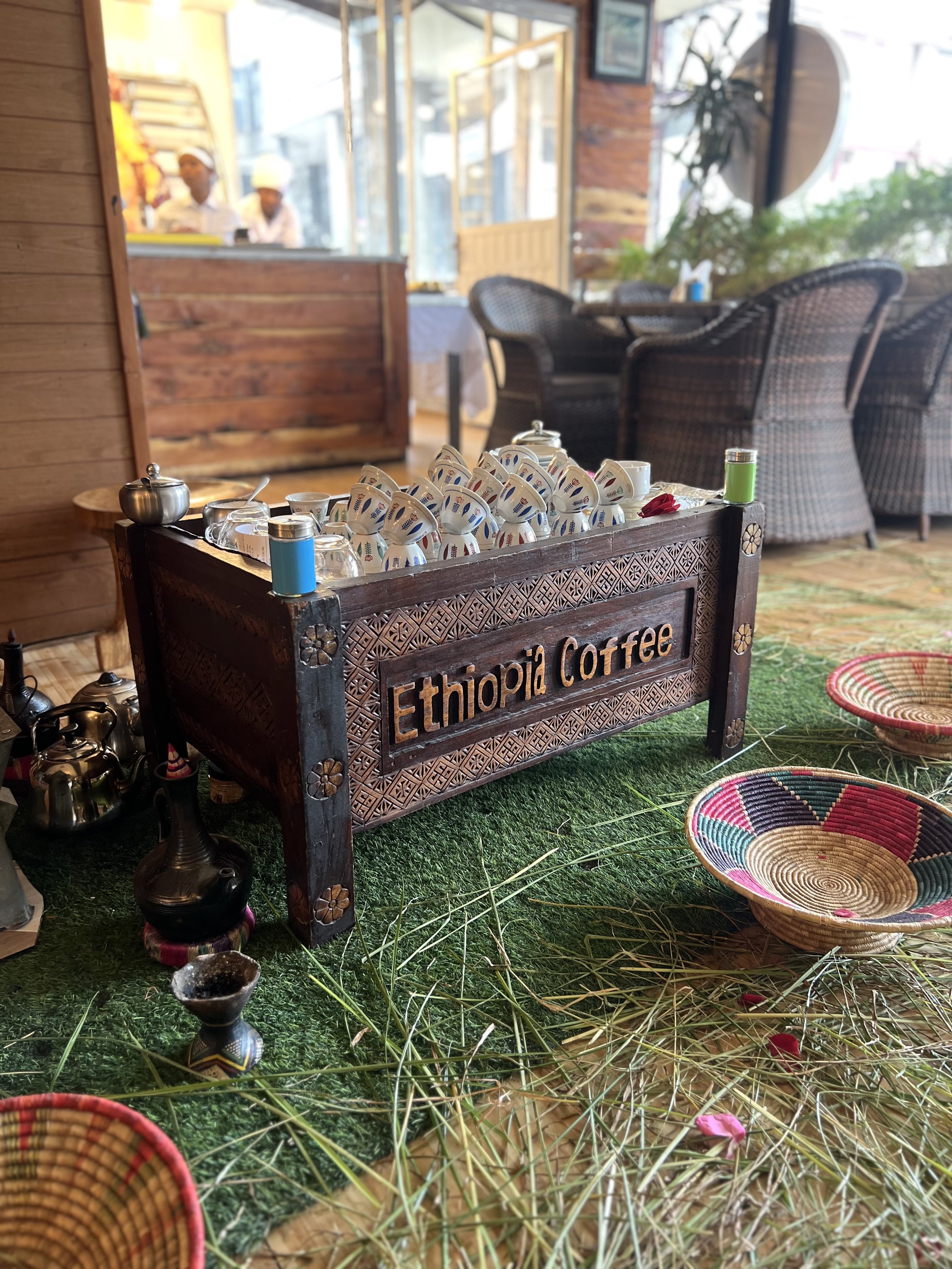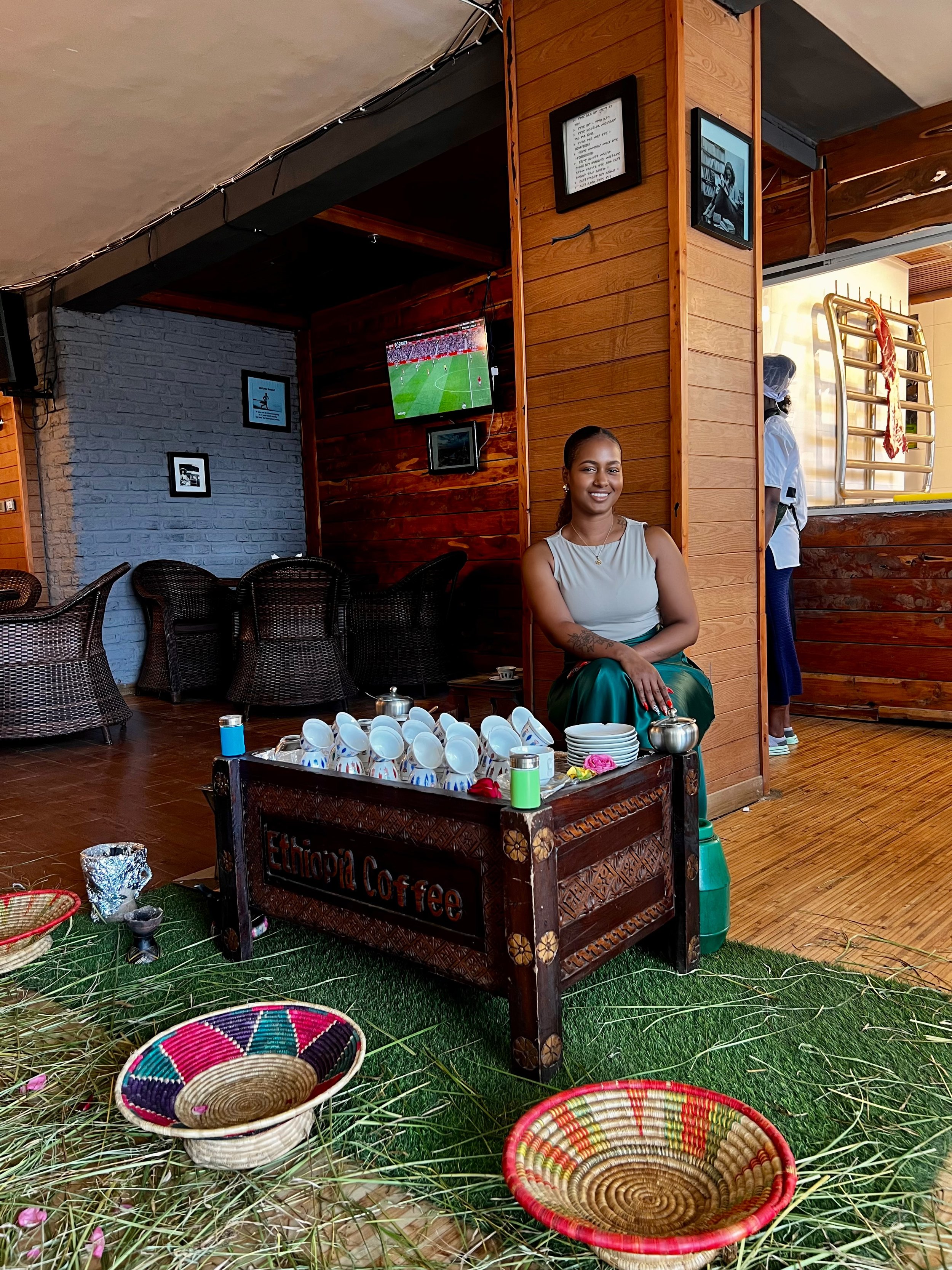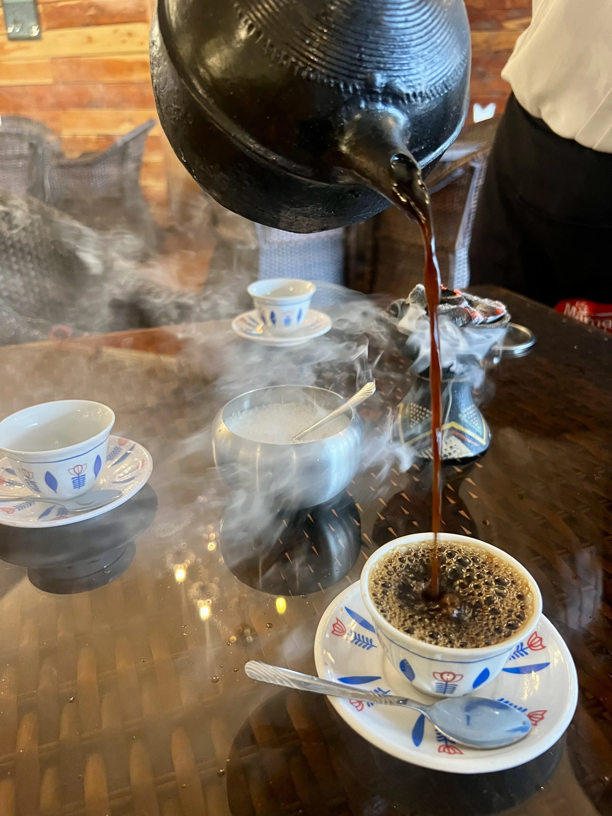 Joe drove us straight to Mama's Kitchen in Bole Medhanialem, where our tour began the only way it rightfully could — with an Ethiopian coffee ceremony.