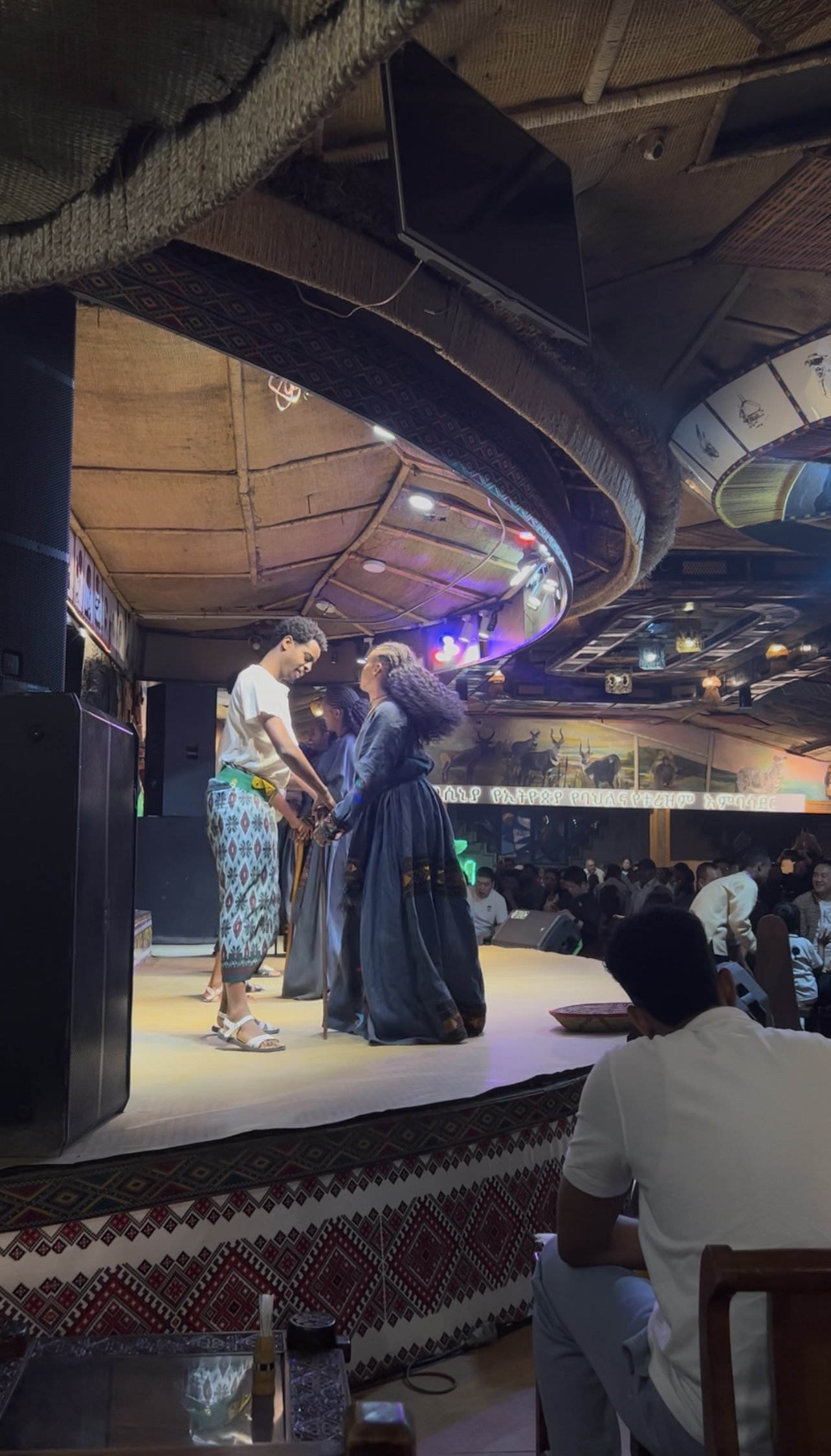 Yod Abyssinia is not a restaurant. It is an experience — and I say that without pretense, having dined at Ethiopian restaurants from coast to coast. Nothing prepared me for walking through those doors. The sound of singing reached us before we were fully inside. And then we were inside — surrounded by people, in every direction, singing together, dancing, laughing. It felt like arriving at a celebration that had been waiting for us. It was not a perfunctory welcome. It was a warm hug made of music.