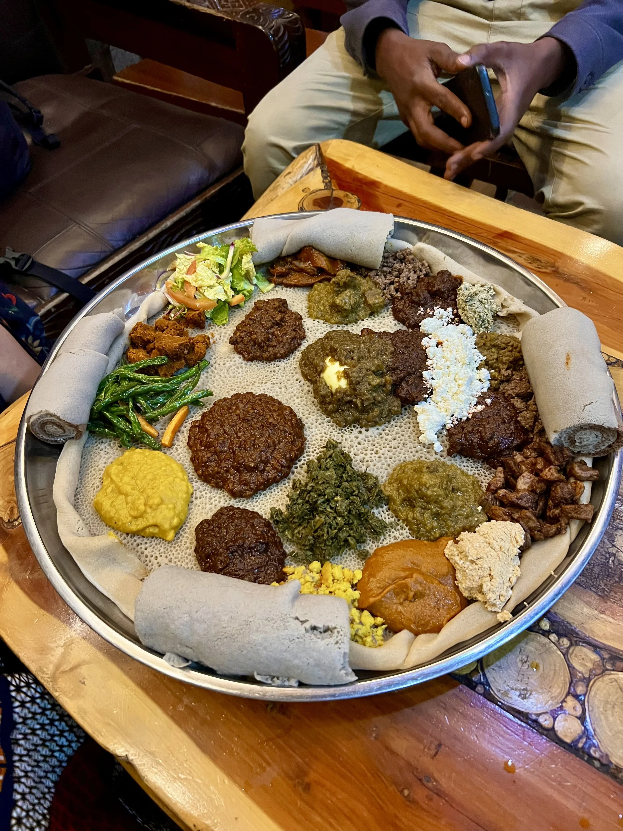 We broke bread — injera, specifically — over a wide, shared platter of seasoned meats and vibrant vegetables. I had an early flight to Cape Town in the morning. I told myself I would not overeat.