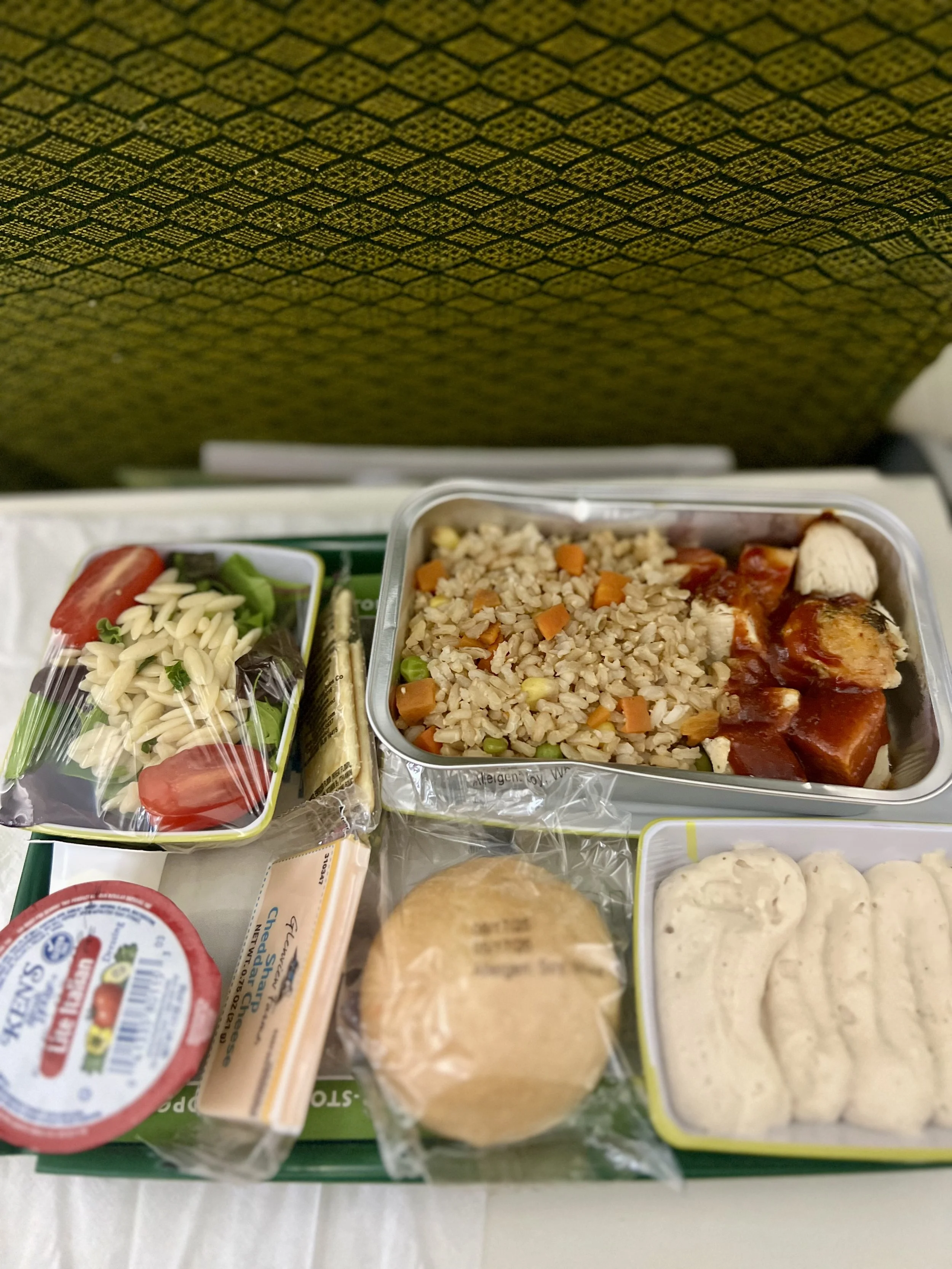 I was honestly surprised by how much I enjoyed the meals. I was hoping for authentic Ethiopian dishes like injera with stews (that experience lives in Cloud 9, their business class), but even in Economy, the meals were fresh and filling, with two main-course options, sandwiches, breakfast service and yes, unlimited wine.