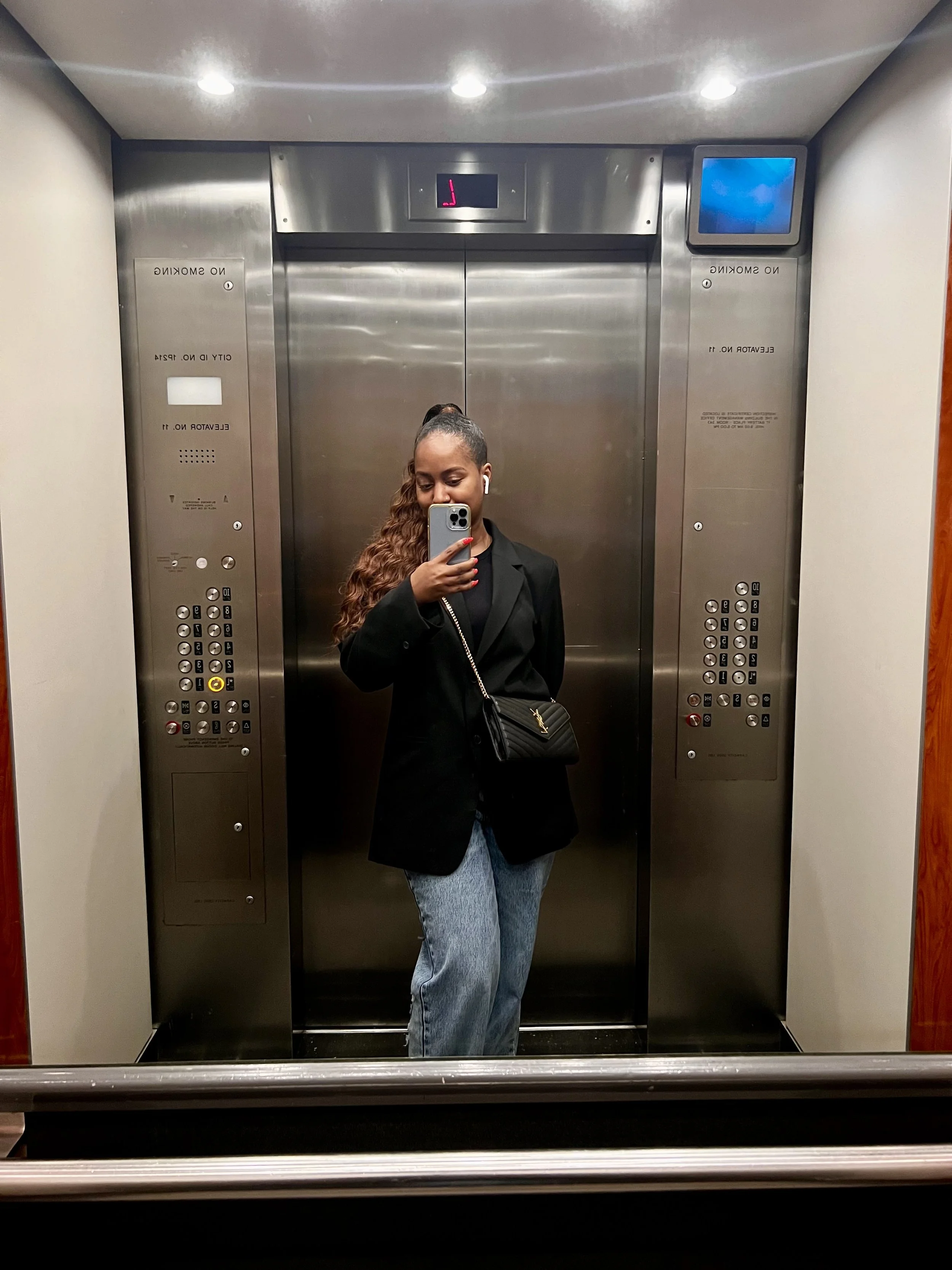It was early Thursday morning at Hartsfield-Jackson Atlanta International Airport, and I was half-asleep, dragging myself to the gate for my 6 a.m. flight to New York. But before boarding, I had to stop and smile at my outfit—it was giving exactly what I needed: casual, chic, and most importantly, comfortable. I threw on a black tailored blazer I found at H&M, paired it with some baggy low-rise jeans from Fashion Nova, and finished the look with my old-school Adidas. With a long day ahead in the city, I needed something easy to walk mad blocks in—but still fashion-forward.